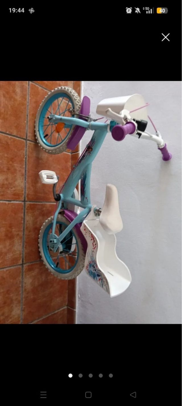 Bicicleta infantil con temática de Frozen ( tengo los ruedines para la de detrás) - Color azul y morado. - Ruedines incluidos. - Asiento ajustable.