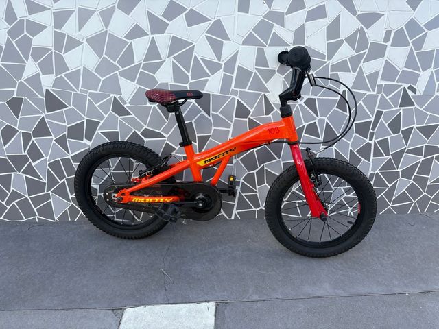 Detalles del productoBicicleta infantil de la marca Monty, modelo 103, en llamativo color naranja. Ideal para los más pequeños.