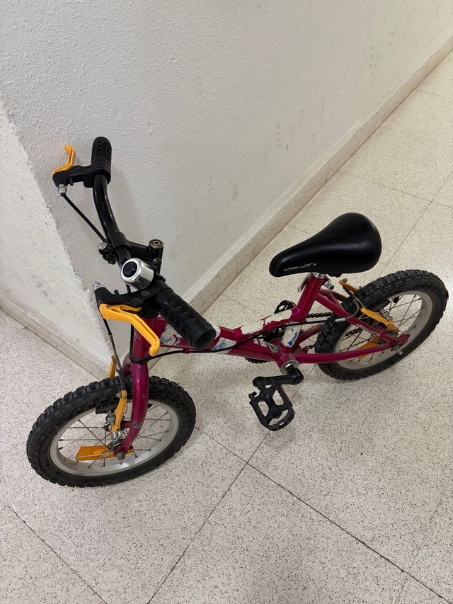 Bicicleta infantil de color morado, ideal para los más pequeños. - Ruedas con buen agarre. - Frenos de mano. - Pedales resistentes.