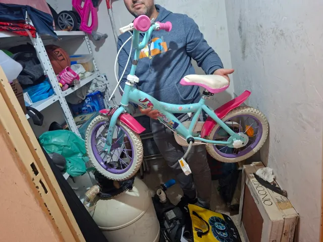 Bicicleta infantil de color azul con detalles en rosa, ideal para niñas. - Ruedas de 12 pulgadas. - Sillín ajustable. - Guardabarros delantero y trasero.