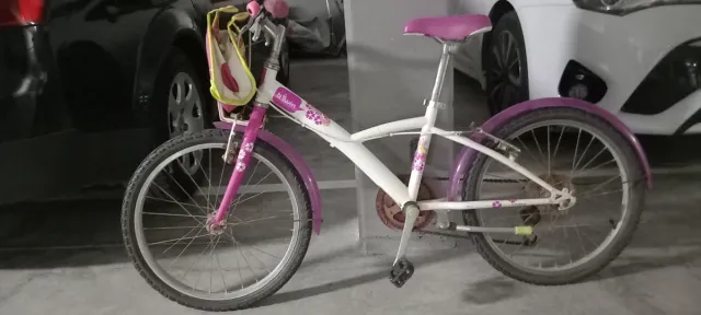 Bicicleta infantil en buen estado, ideal para los más pequeños. Hay que cambiar las ruedas. - Color blanco y rosa. - Cesta delantera.