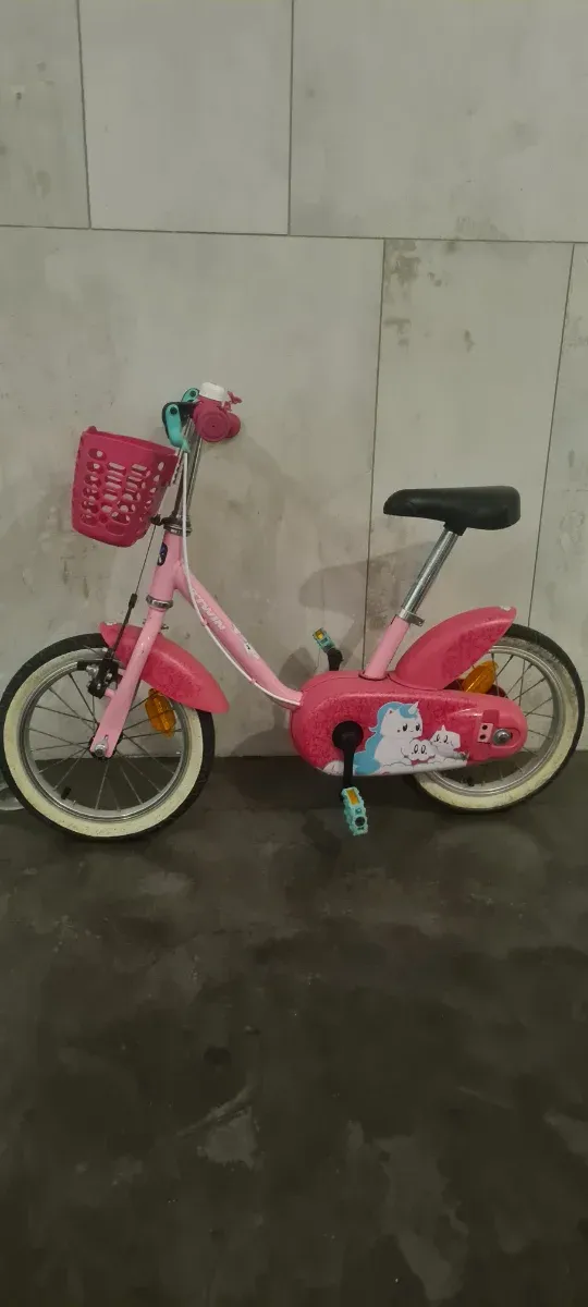 Detalles del productoBicicleta infantil de color rosa, ideal para los más pequeños. Cuenta con una práctica cesta delantera.