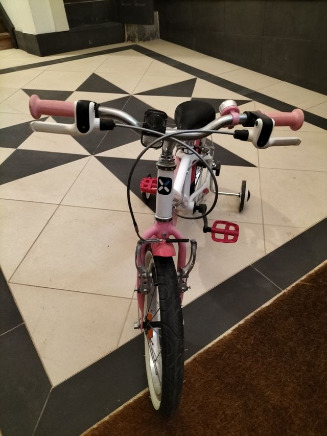 Detalles del productoBicicleta de niña impecable. Ideal para chicas de 4 a 6 años. Está en perfecto estado: la ha usado 2 veces (literal). Comprada en el Decathlon, me costó 120 euros.