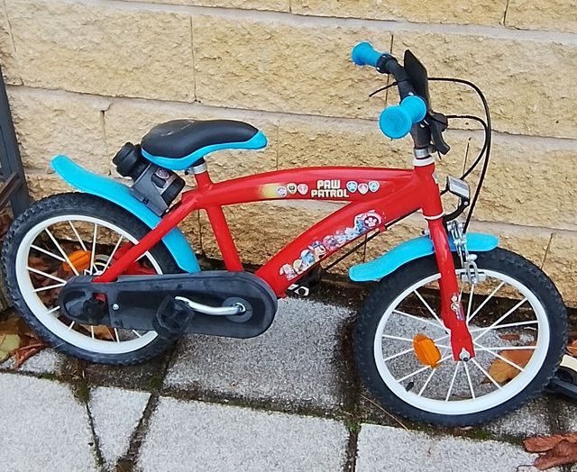 Bicicleta infantil con diseño de Paw Patrol. - Color principal rojo. - Ruedines de apoyo incluidos. - Manillar y sillín ajustables.
