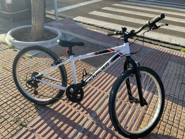 Detalles del productoBicicleta Infantil ROCKRIDER ST 100 24'' 9-12 años Blanca para niños (de 135 a 150 cm). Ideal para descubrir las primeras sensaciones en BTT, esta bicicleta INFANTIL de 24 pulgadas es robusta y fácil de utilizar, con 1 solo plato y 6 velocidades.