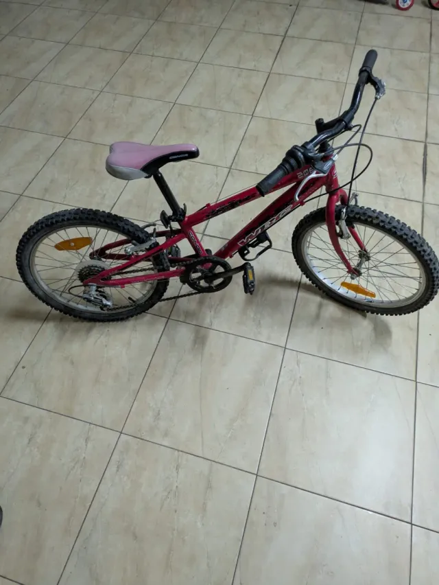 Bicicleta infantil de color rojo, ideal para niños. - Ruedas de 20 pulgadas. - Sillín ajustable. - Frenos. - Pedales.