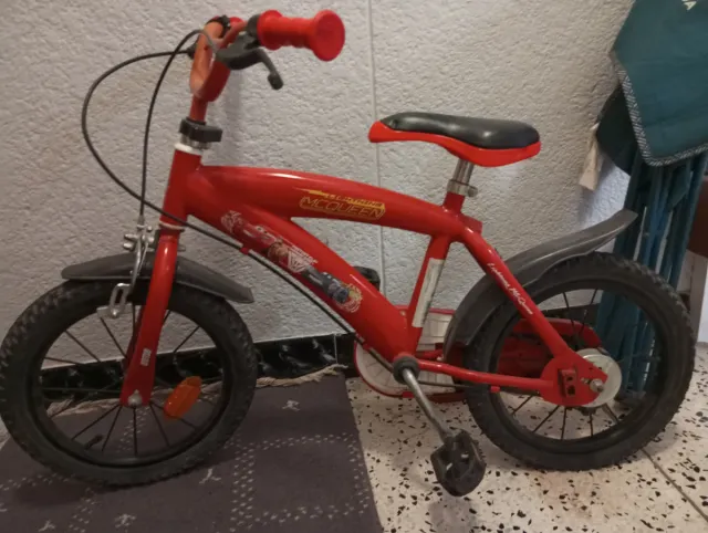 Bicicleta infantil con diseño de Rayo McQueen. - Color rojo. - Ruedines incluidos.