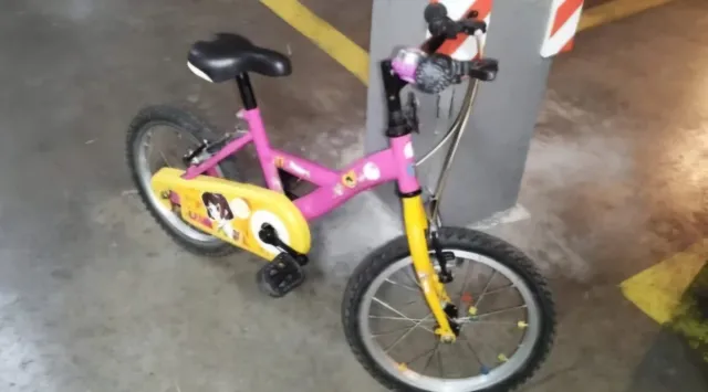 Bicicleta de niña en color rosa, ideal para los más pequeños. - Cadena protegida con cubre cadena. - Ruedines de apoyo incluidos. - Diseño con personajes infantiles.