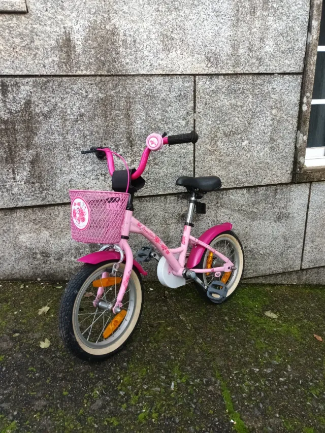Bicicleta de paseo para niñas en color rosa. - Cesta delantera. - Incluye ruedines. - Diseño con flores.