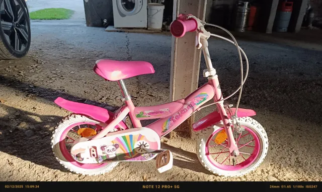 Bicicleta de paseo para niñas, de color rosa. - Ruedas blancas con detalles rosas. - Sillín y manillar rosas. - Diseño con pegatinas de arcoíris y osito.