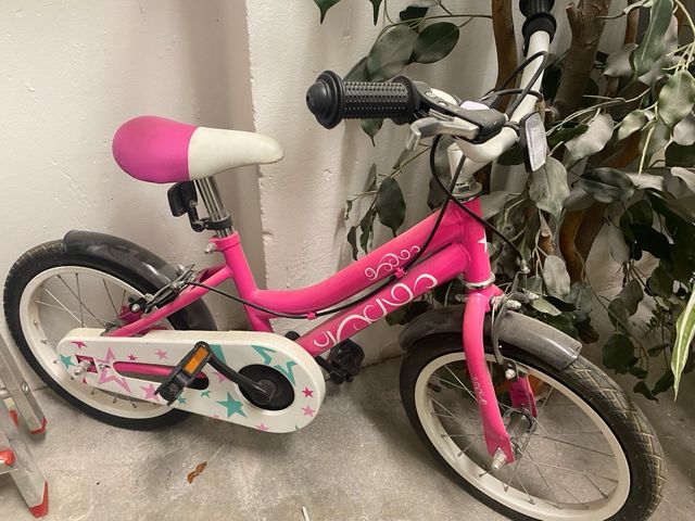Bicicleta infantil de color rosa, ideal para los más pequeños. - Diseño llamativo con estrellas. - Sillín bicolor (rosa y blanco).