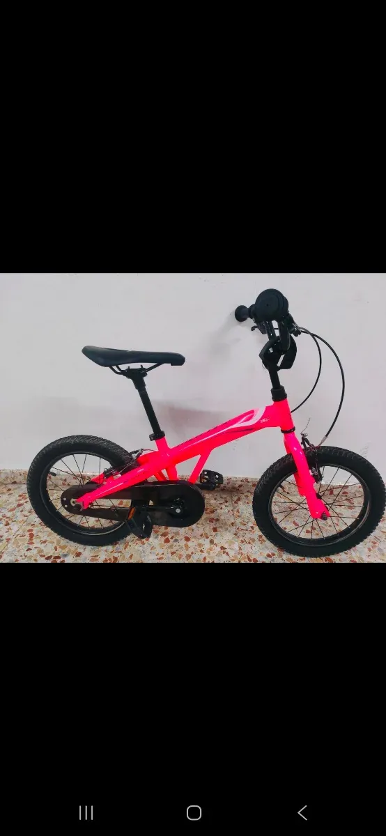 Bicicleta infantil de color rosa brillante, perfecta para los más pequeños. - Ruedas de 12 pulgadas. - Frenos de mano. - Sillín ajustable.