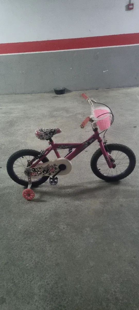 Detalles del productoBicicleta infantil de color rosa, ideal para los más pequeños que están aprendiendo a montar.