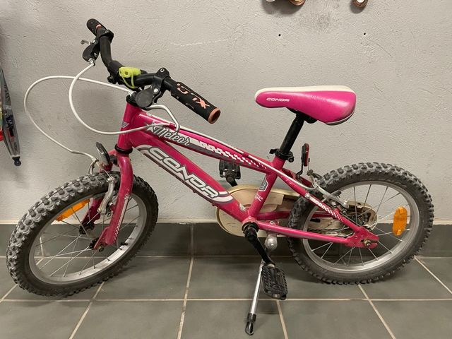 Bicicleta infantil de color rosa, modelo Conor. Ideal para los más pequeños. - Ruedas de 16 pulgadas. - Sillín ajustable. - Frenos delanteros y traseros.