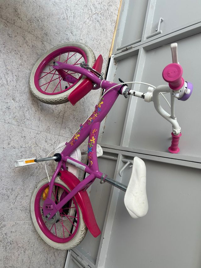 Bicicleta infantil rosa y blanca