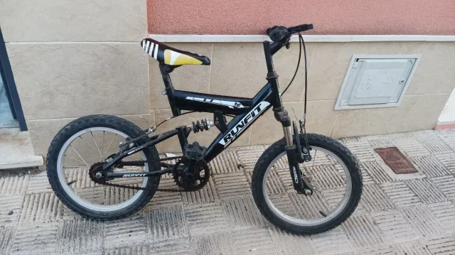Detalles del productoBicicleta infantil de la marca RUNFIT, con ruedas de 16 pulgadas.