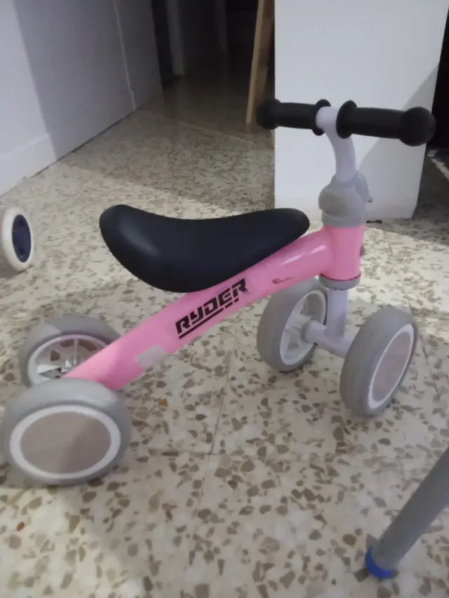 Detalles del productoBicicleta de aprendizaje para niños con un divertido diseño en color rosa y el logo de RYDER.