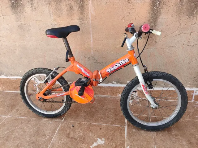 Bicicleta infantil de la marca Topbike en color naranja. - Ruedas de 16 pulgadas. - Frenos. - Timbre. - Sillín ajustable.