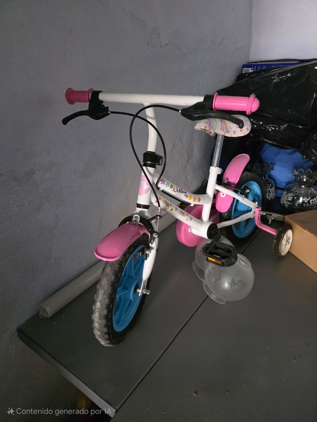 Detalles del productoBicicleta infantil con diseño de unicornio, ideal para los más pequeños. Cuenta con ruedas de apoyo para facilitar el aprendizaje.