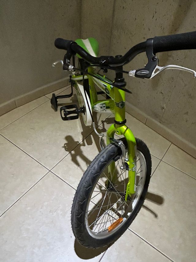 Bicicleta infantil de color verde, lista para estrenar. Ideal para los más pequeños. - Ruedines incluidos. - Frenos Tektro.