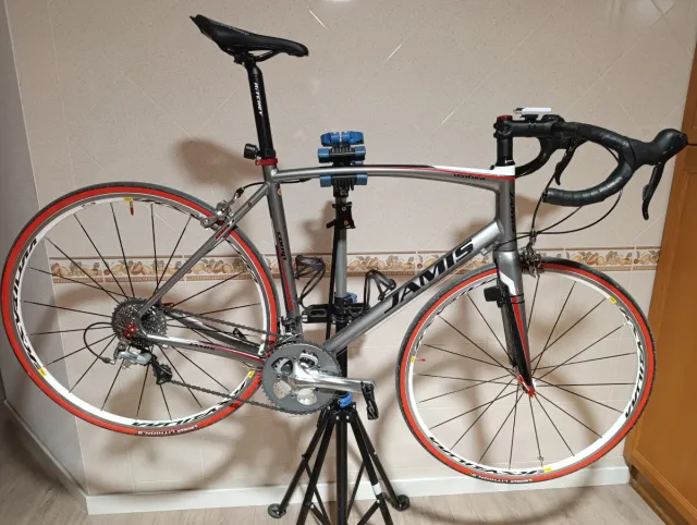 Detalles del productoBicicleta de carretera Jamis Ventura Comp en talla 58(XL) Bielas tiagra 172,5 34-50 ,frenos Shimano 105, cambio Shimano ultegra 9 velocidades con cassette 11-34, mandos sora de 2x9 velocidades, llantas mavic kysirium S blancas, neumáticos Michelin lithion3 casi nuevos, cinta de manillar gobik recién puesta , bici revisa y perfecta