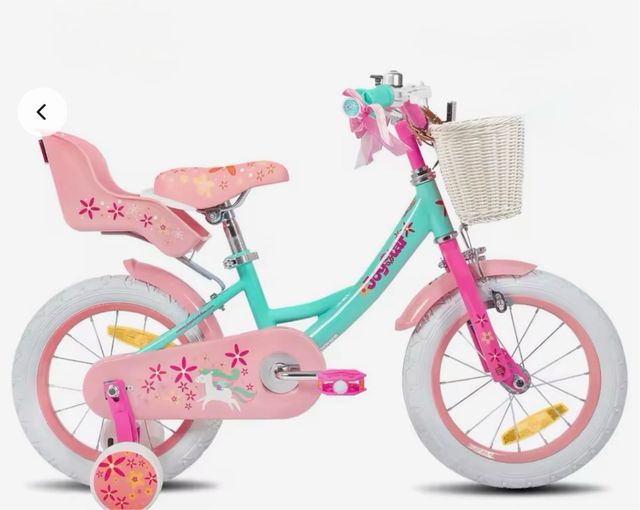 Detalles del productoBicicleta infantil de la marca Joystar, con un diseño encantador de unicornios en tonos rosa y turquesa. Ideal para las pequeñas ciclistas.