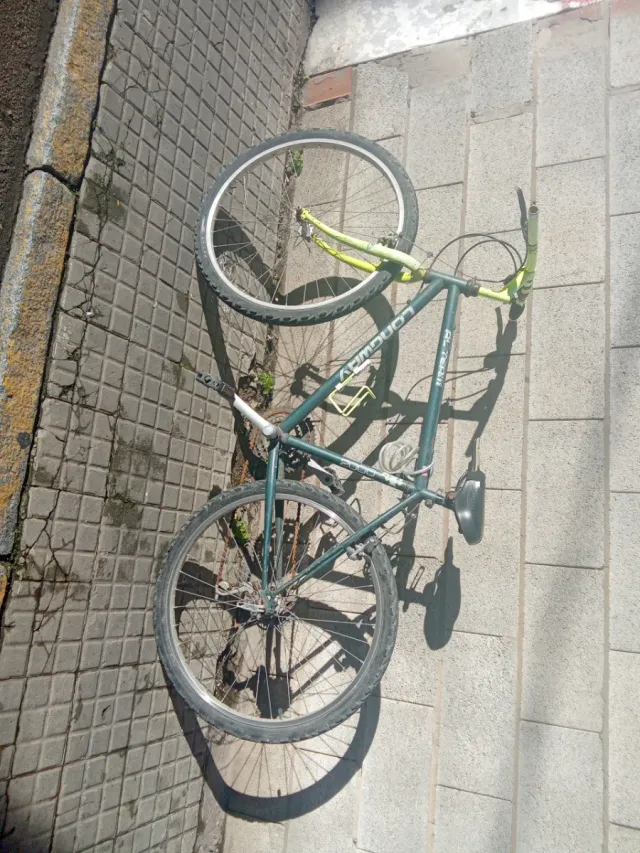 Bicicleta de montaña Longway. - Cuadro de color verde. - Ruedas de 26 pulgadas. - Incluye portabidón amarillo.