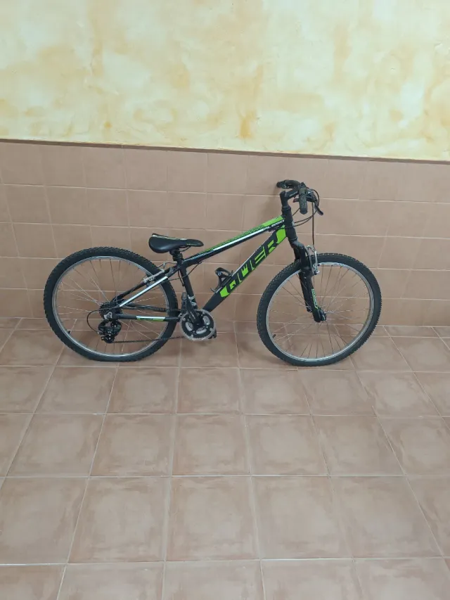 Detalles del productoSe vende bicicleta con marchas color verde y negro con ruedas todoterreno ya sea para llevarla por el campo o por la ciudad, único defecto una de las ruedas está pinchada.