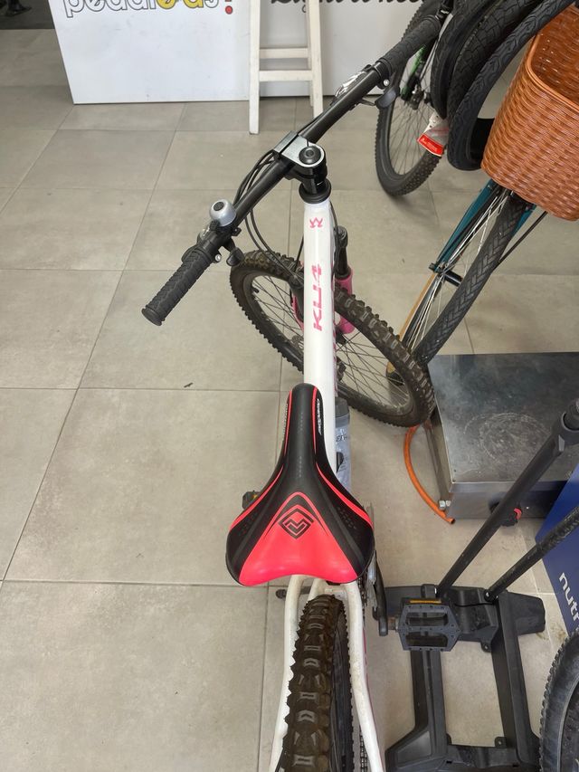 Bicicleta infantil Megamo de 24 pulgadas. - Cuadro blanco con detalles en rosa. - Sillín deportivo con detalles en rosa y negro. - Ruedas todoterreno.