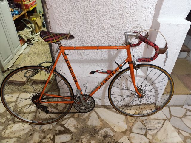 Detalles del productoBicicleta de carretera Mercier de color naranja, un modelo clásico con un diseño vintage.