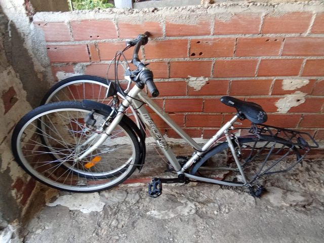 Bicicleta de la marca Mercier en color plateado. Ideal para paseos. - Cuadro de bicicleta. - Ruedas. - Sillín. - Pedales. - Manillar. - Portaequipajes trasero.