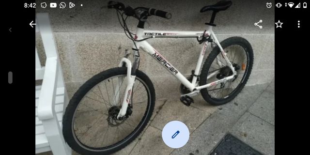 Bicicleta de montaña Mercier Tactile en buen estado. - Cuadro blanco con detalles en rojo. - Horquilla de suspensión delantera. - Frenos de disco.