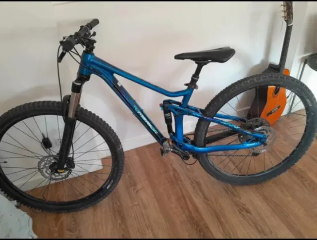 Detalles del productoVenta o cambio por bici de dh Bicicleta merida talla S con tija telescópica frenos idraulicos y cableado interno, ruedas de 29x23 la bici esta casi nueva lo único q tendrías q cambiar el cartucho de la tija para q se suba al máximo y el manillar en el puño derecho el primer centímetro se rompió por una caída no molesta al usarla el cuadro esta en perfecto estado sin ninguna grieta doble suspensión de aire, se le puede regular el rebote de la suspensión y lo blanda o dura, también puedes bloquear la suspensión para las subidas.