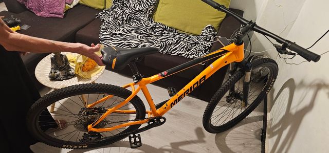 Detalles del productoBicicleta Merida de montaña en color naranja, ideal para quienes buscan iniciarse en el ciclismo o para un uso ocasional.