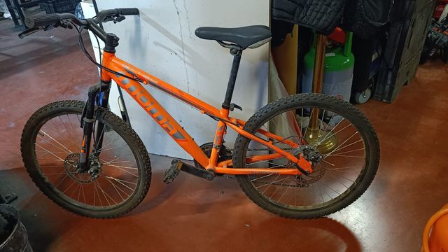 Detalles del productoBicicleta de montaña en color naranja, ideal para jóvenes ciclistas.