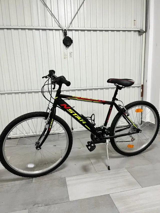 Bicicleta de montaña con ruedas de 26 pulgadas. - Cuadro de color negro. - Diseño deportivo con detalles en amarillo y rojo. - Pocos kilometros