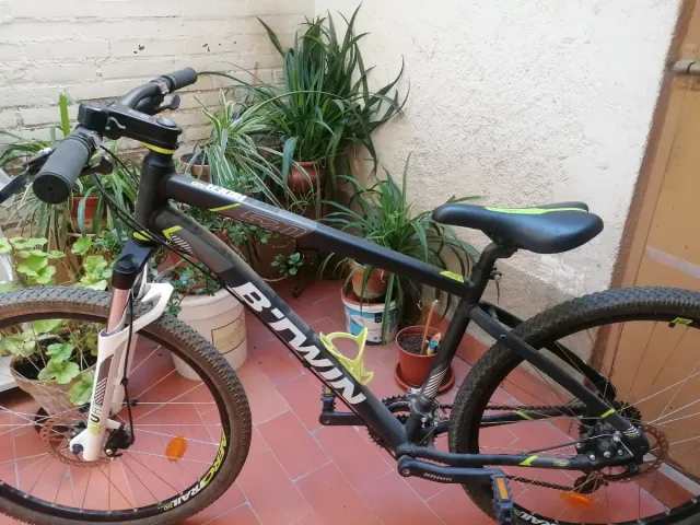 Bicicleta de montaña en color negro, talla L y ruedas de 27.5 pulgadas. Muy poco uso. - Cuadro de aluminio. - Frenos de disco. - Suspensión delantera.