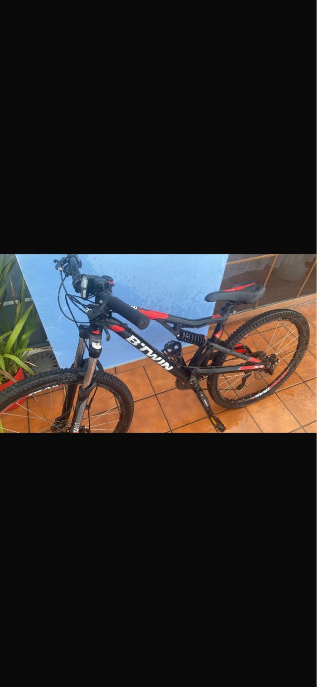 Detalles del productoBicicleta de montaña Btwin con un diseño deportivo en colores rojo y negro. Ideal para disfrutar de rutas.