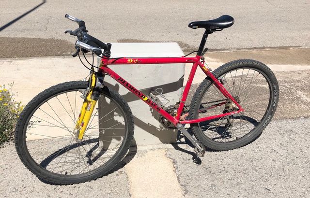 Detalles del productoBicicleta de montaña Diamondback, roja y amarilla. Está usada, con señales de desgaste.