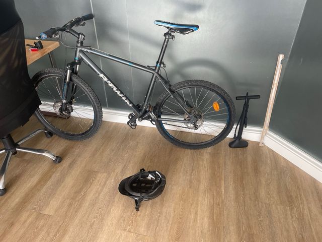 Bicicleta de montaña Giant en buen estado, lista para tus aventuras. - Incluye casco. - Color gris con detalles azules. Recogida en el centro de Moraira.