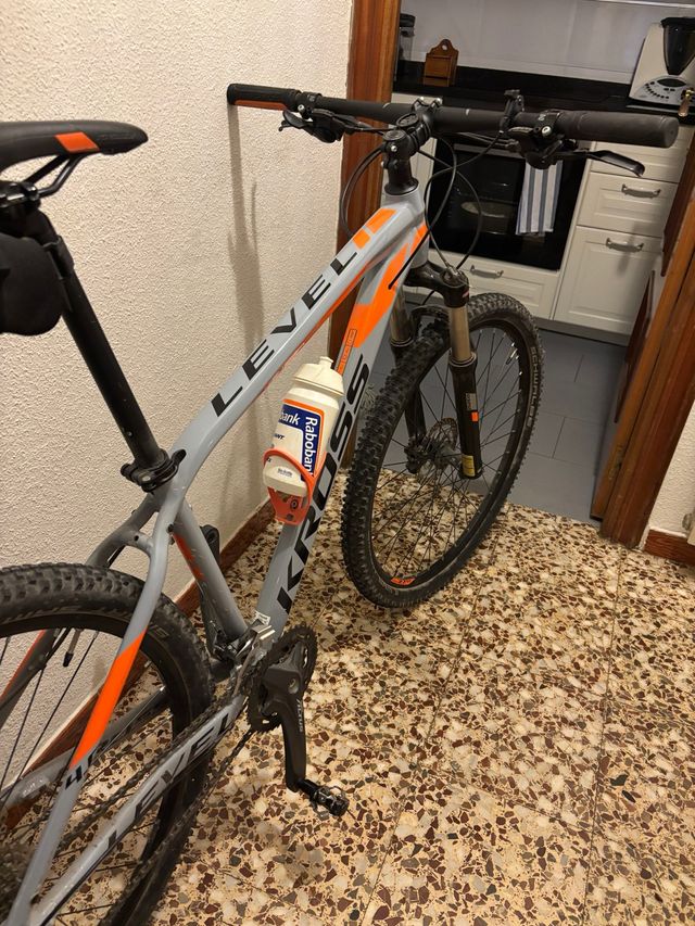 Detalles del productoBicicleta de montaña Kross con ruedas de 27.5 pulgadas. Ideal para senderos y rutas.