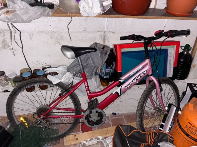 Bicicleta de montaña en color rosa, modelo Longway. - Cuadro de metal. - Ruedas de 24 pulgadas. - Frenos delanteros y traseros. - Sillín ajustable.