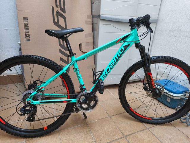 Detalles del productoBicicleta de montaña Megamo KU2 en color verde menta y negro.