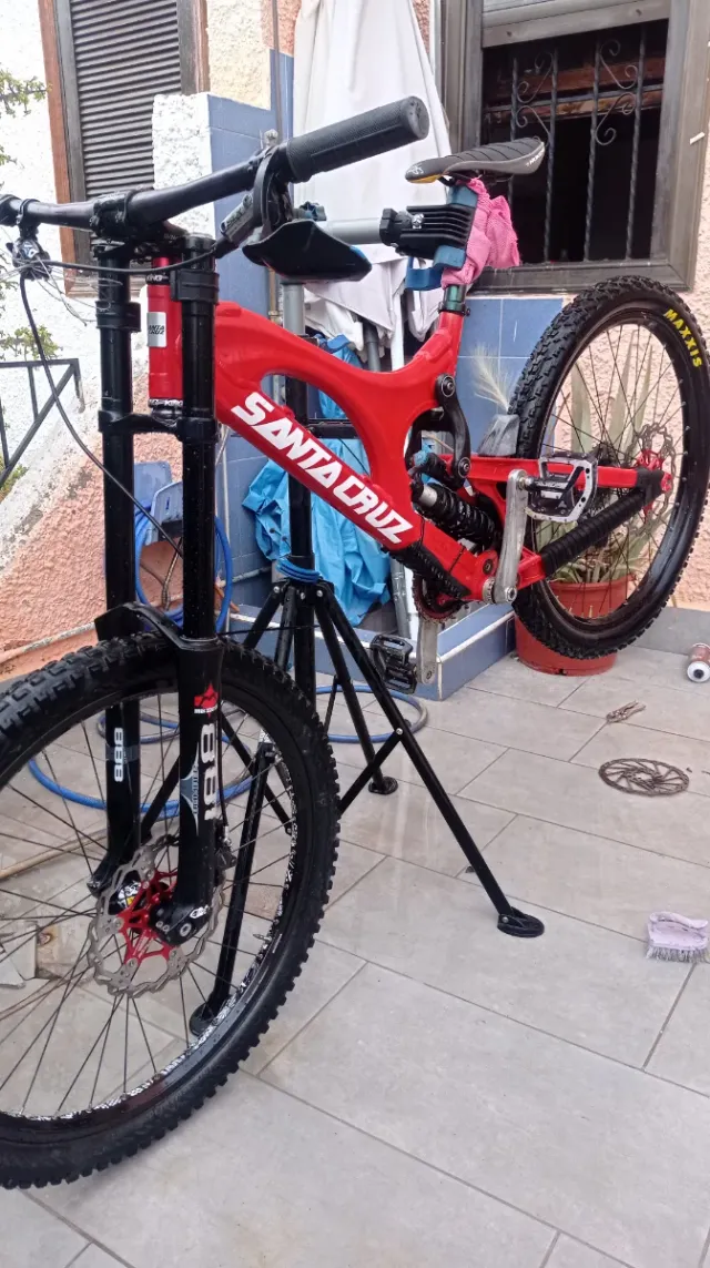 Bicicleta de montaña Santa Cruz en color rojo. - Cuadro de aluminio. - Suspensión delantera y trasera. - Ruedas Maxxis.