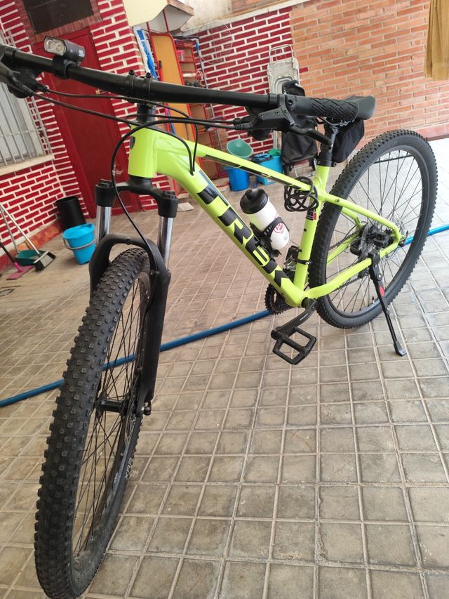 Detalles del productoBicicleta de montaña Trek en color verde lima Talla L. Se encuentra en perfecto estado.
