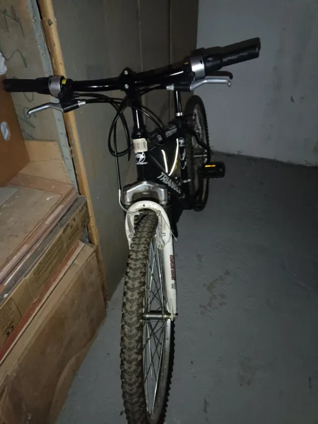 Bicicleta de montaña marca TRIANGLE. - Cuadro negro. - Ruedas todoterreno. - Frenos delanteros y traseros.