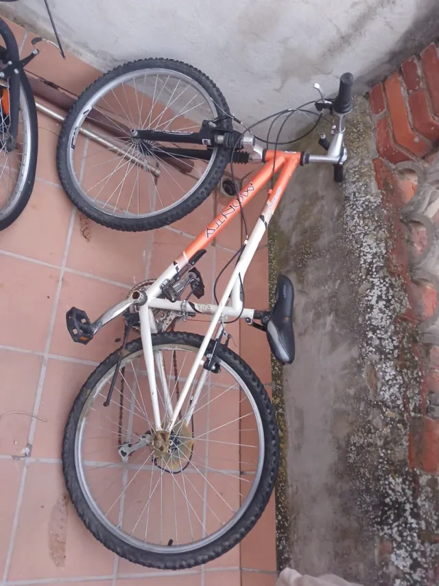 Bicicleta de montaña Monty. - Cuadro de color blanco y naranja. - Ruedas de 26 pulgadas. - Frenos de disco.