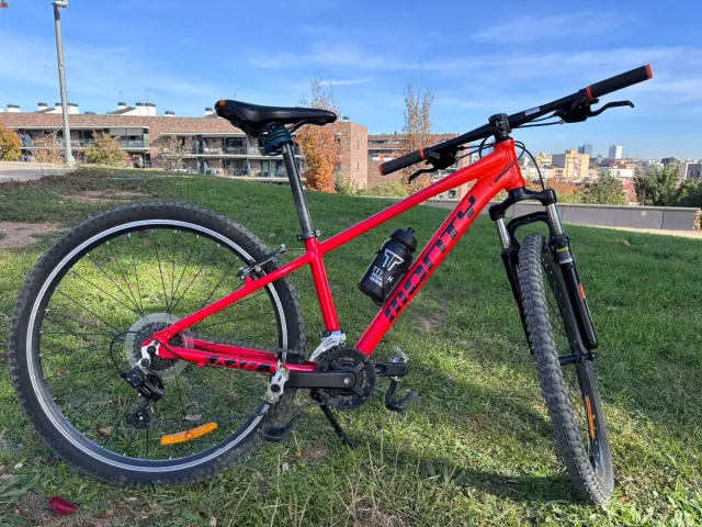 Bicicleta de montaña Monty en color rojo y tamaño de rueda de 26 pulgadas. - Cuadro de aluminio. - Suspensión delantera. - Frenos de disco. - Cambio Shimano.