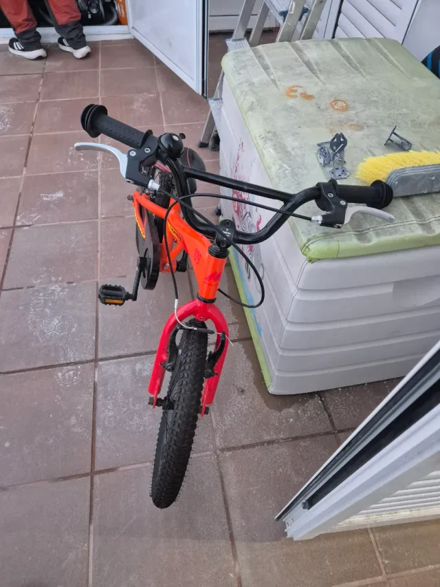 Detalles del productoBicicleta infantil de la marca Monty en color naranja.