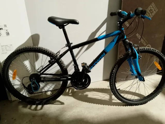 Bicicleta de montaña Rockrider con ruedas de 24 pulgadas. - Frenos V-brake. - Cambio plato y piñon - Suspensión delantera.